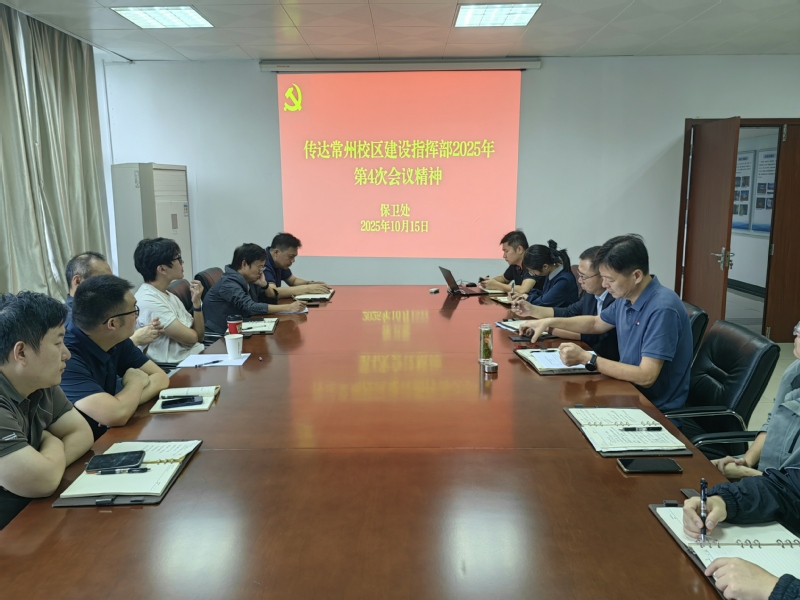 2025年10月15日上午,我处在江宁校区召开专题会议,传达常州校区建设指挥部2025年第4次会议精神,并就近期常州校区安全保卫工作进行专题部署,同时开展了专题学习。会议由洪宇处长主持,全体工作人员参加会议。